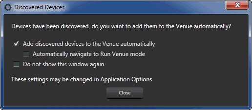 Add discovered devices to the venue automatically: When checked, devices that are discovered on the network are added to the venue.