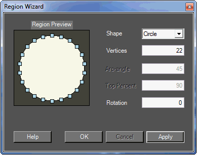 The Region Wizard is for customizing the shape and rotation of a region such as the Region Button